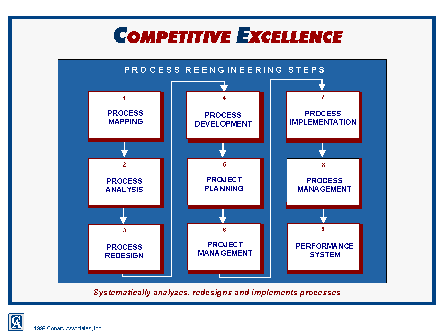 Conard Associates utilizes a team-based, nine-step process reengineering methodology which has helped our clients save many millions of dollars. Our redesign projects help you produce substantial and measurable improvements in efficiency, cycle time, cost-effectiveness, quality and customer satisfaction. Our facilitation approach emphasizes shared goals and shared responsibility. We enlist members of your organization, from appropriate functions and levels, who are directly involved in your business processes, and we facilitate chartered, cross-functional teams given responsibility for process analysis and redesign, as well as for development and implementation of process improvements. We do not view reengineering simply as a synonym for cost reduction or downsizing, but rather, as a method to optimize process performance and to eliminate activities which do not add value, so resources can be re-applied more productively elsewhere.
